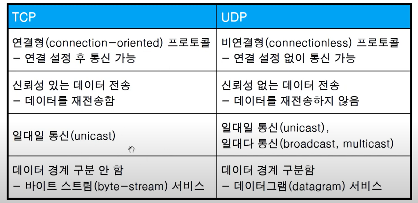 반드시 통신 프로토콜을 사용해야만 데이터 통신이 가능하다. - 클라이언트는 서버주소를 알아야하지만 서버는 패킷에 정보가 담겨온다.