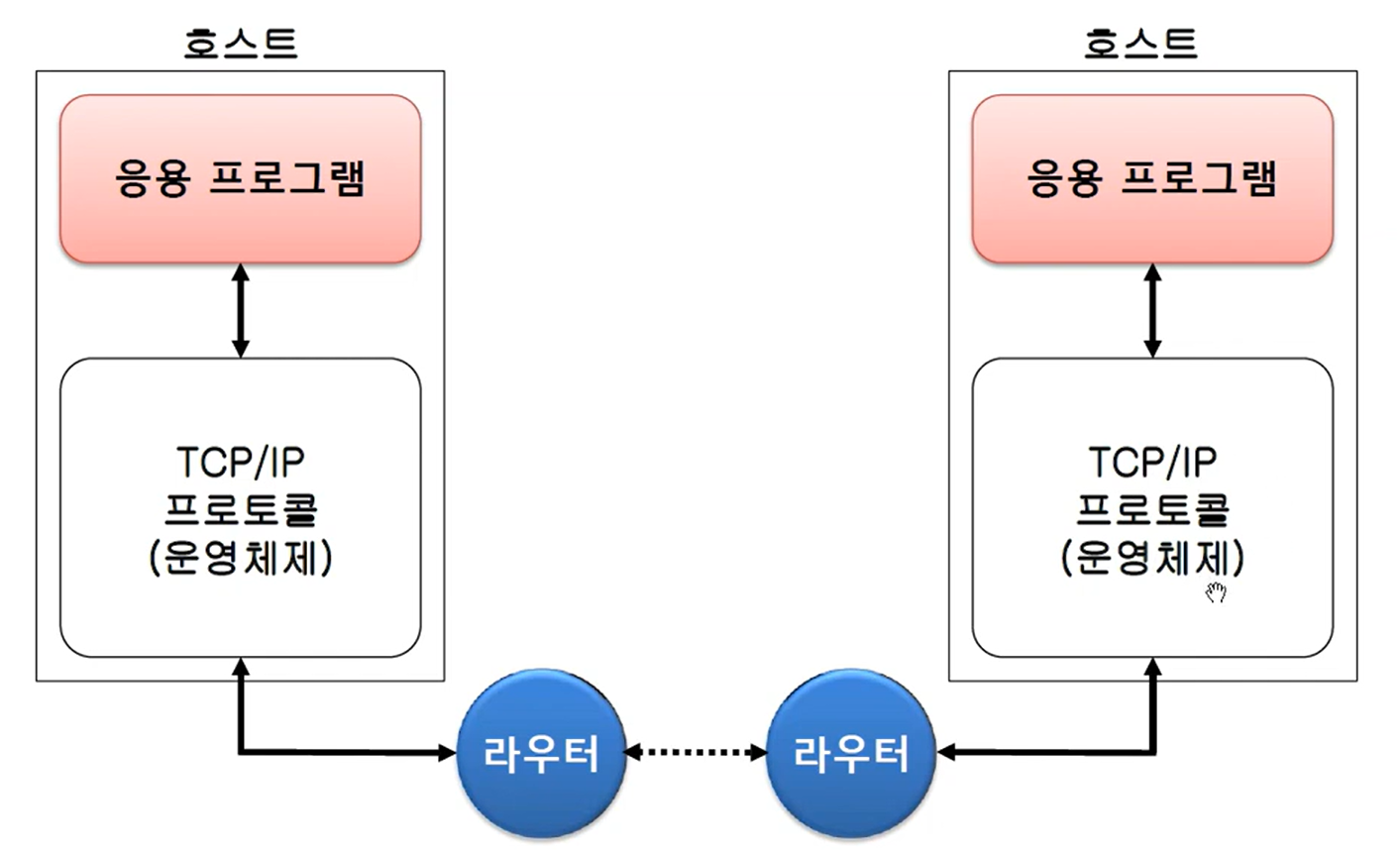 - 응용 프로그램은 TCP/IP 프로토콜의 서비스를 사용하여 통신한다.