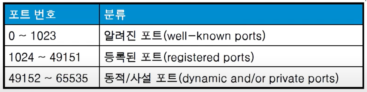 - 프로세스를 지정하는 16비트 주소를 포트번호라고 한다.